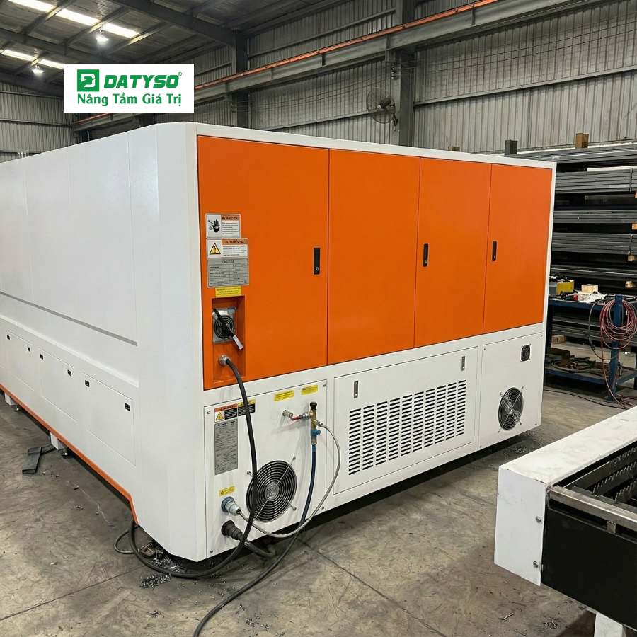 - Nguồn Laser Raycus 20KW mạnh mẽ: Đây là "trái tim" của máy, cung cấp năng lượng cực lớn để cắt xuyên qua thép đen, inox, nhôm dày với tốc độ cao. Nguồn Raycus nổi tiếng về độ ổn định và chi phí bảo trì thấp tại Việt Nam.