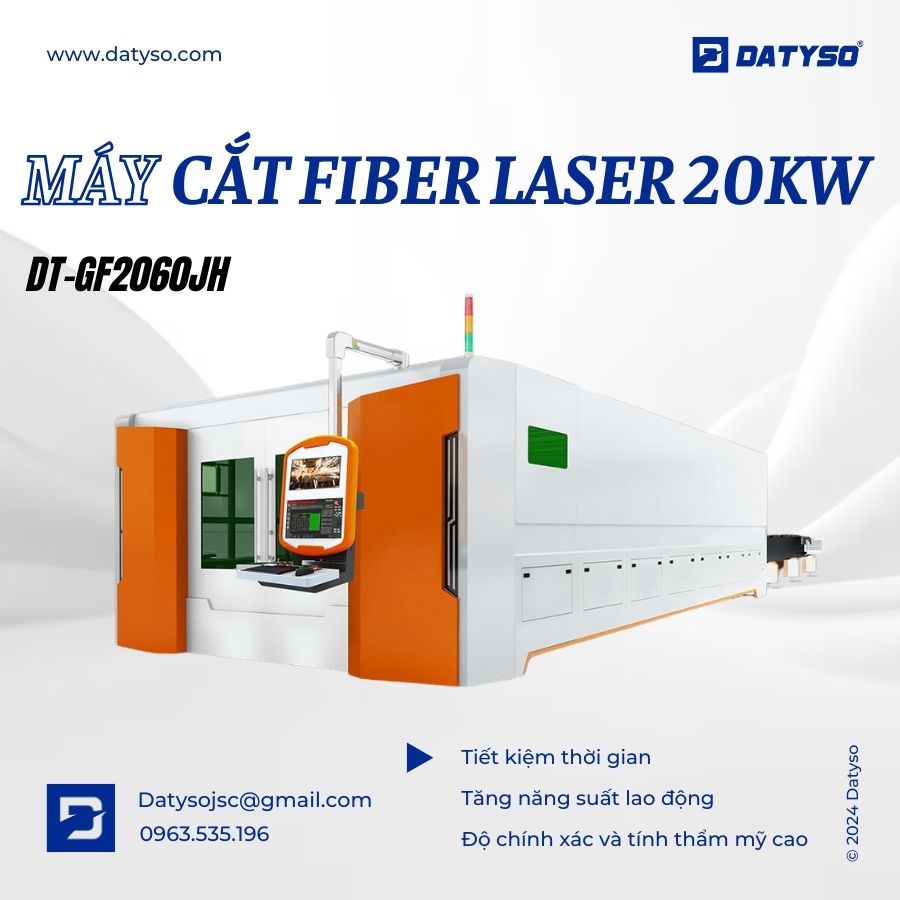 Máy cắt Laser DT-GF2060JH-20KW là giải pháp gia công kim loại tấm đỉnh cao, được thiết kế chuyên biệt để chinh phục những tấm thép cực dày mà các dòng máy công suất thấp (3KW - 6KW) phải "bó tay". Sở hữu nguồn cắt Raycus 20.000W cùng hệ thống bàn chuyển đổi song song, máy mang lại tốc độ cắt nhanh khủng khiếp và chất lượng đường cắt sắc nét, vuông vức ngay cả trên vật liệu dày tới 50mm-80mm.