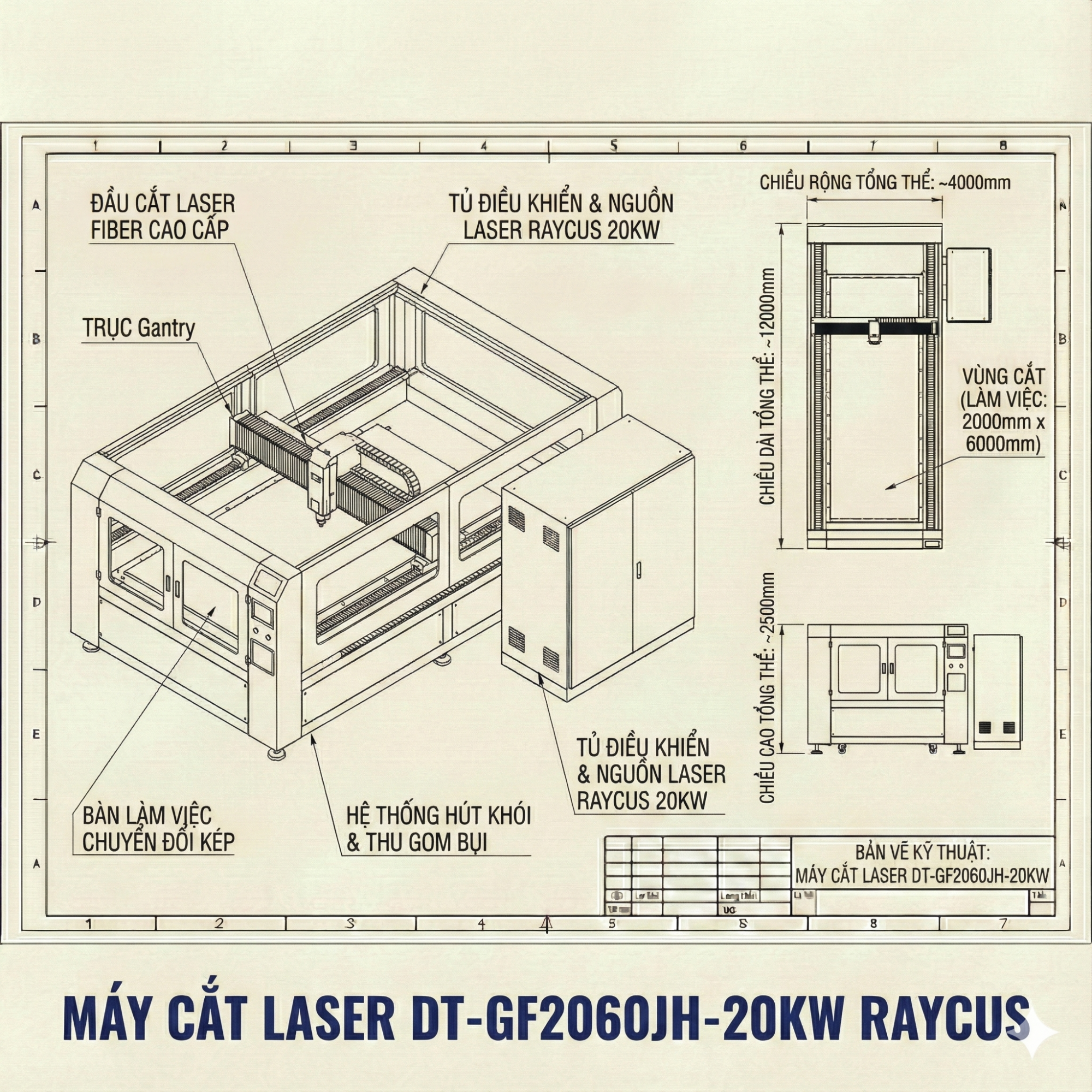 Phần 1: Mô tả chung về sản phẩm Máy Cắt Laser DT-GF2060JH-20KW RAYCUS